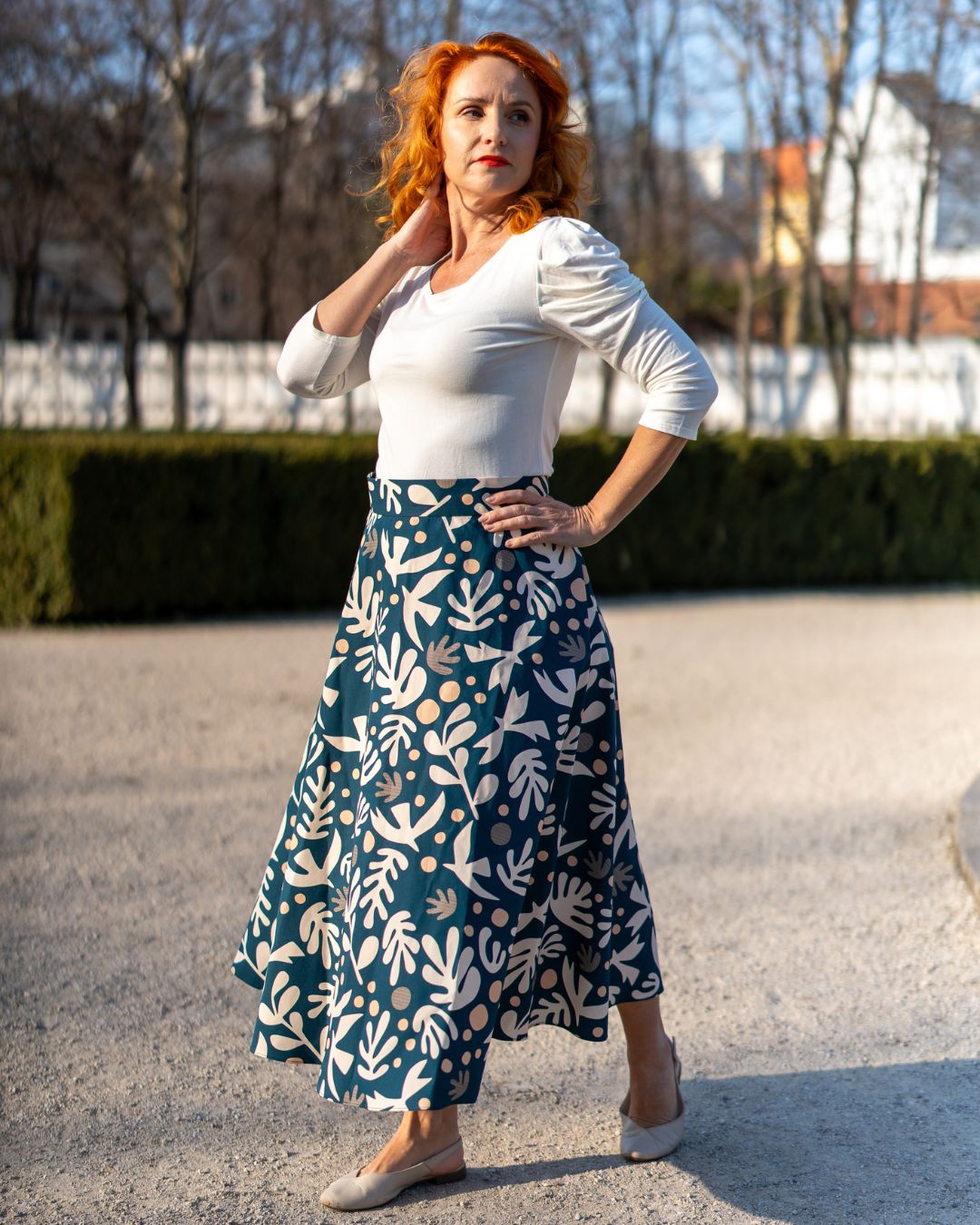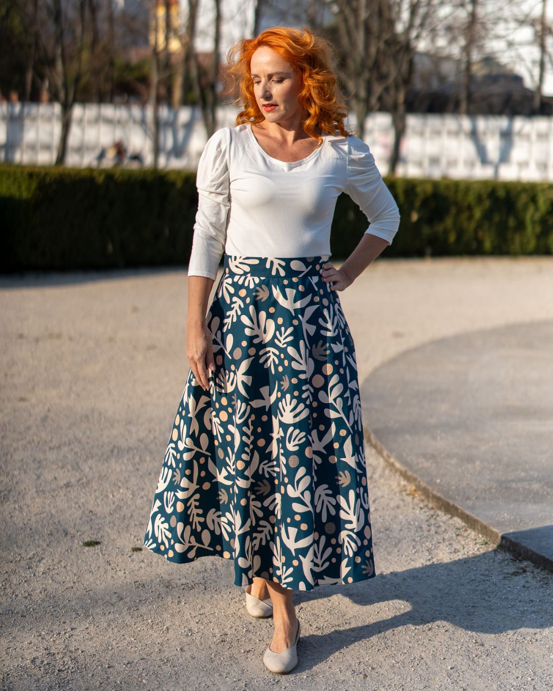 Pásec je široký 5cm. Dĺžka sukne je midi (80cm).
